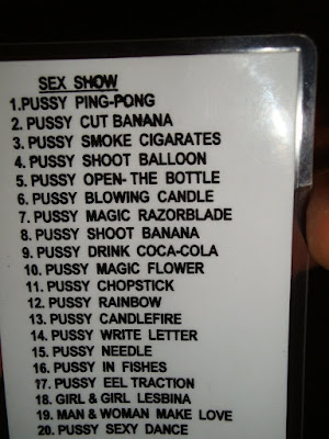 We did not know that PatPong, besides the night market, had plenty of sex shows and "friendly girls". Of course we got an offer to attend a famous ping pong show, where girls could do all the below stuff with their pussies...yep, we decided may be next time :-D